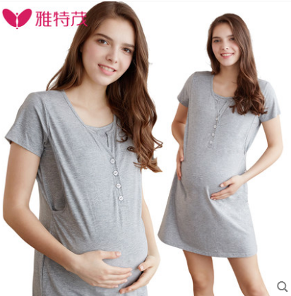 雅特茂 孕婦春裝短袖莫代爾連衣裙夏季哺乳睡衣產婦睡裙家居..